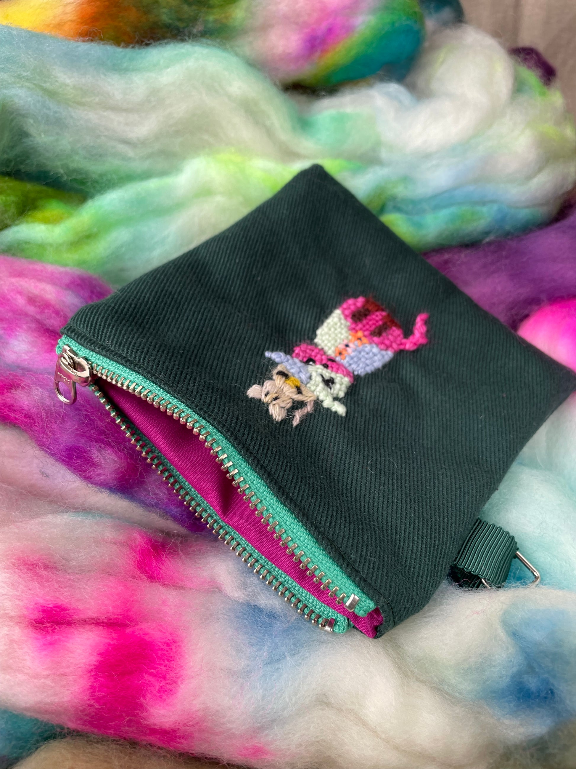 This pouch has space to hold your knitting notions. Small thread cutting scissors fit in alongside a measuring tape and stitch markers.